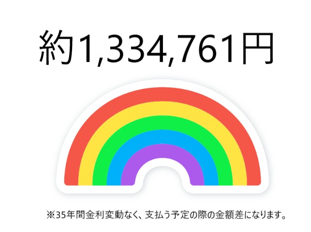 月々の支払いは約3,178円(420ヶ月で均等割り)増加の計算になります。